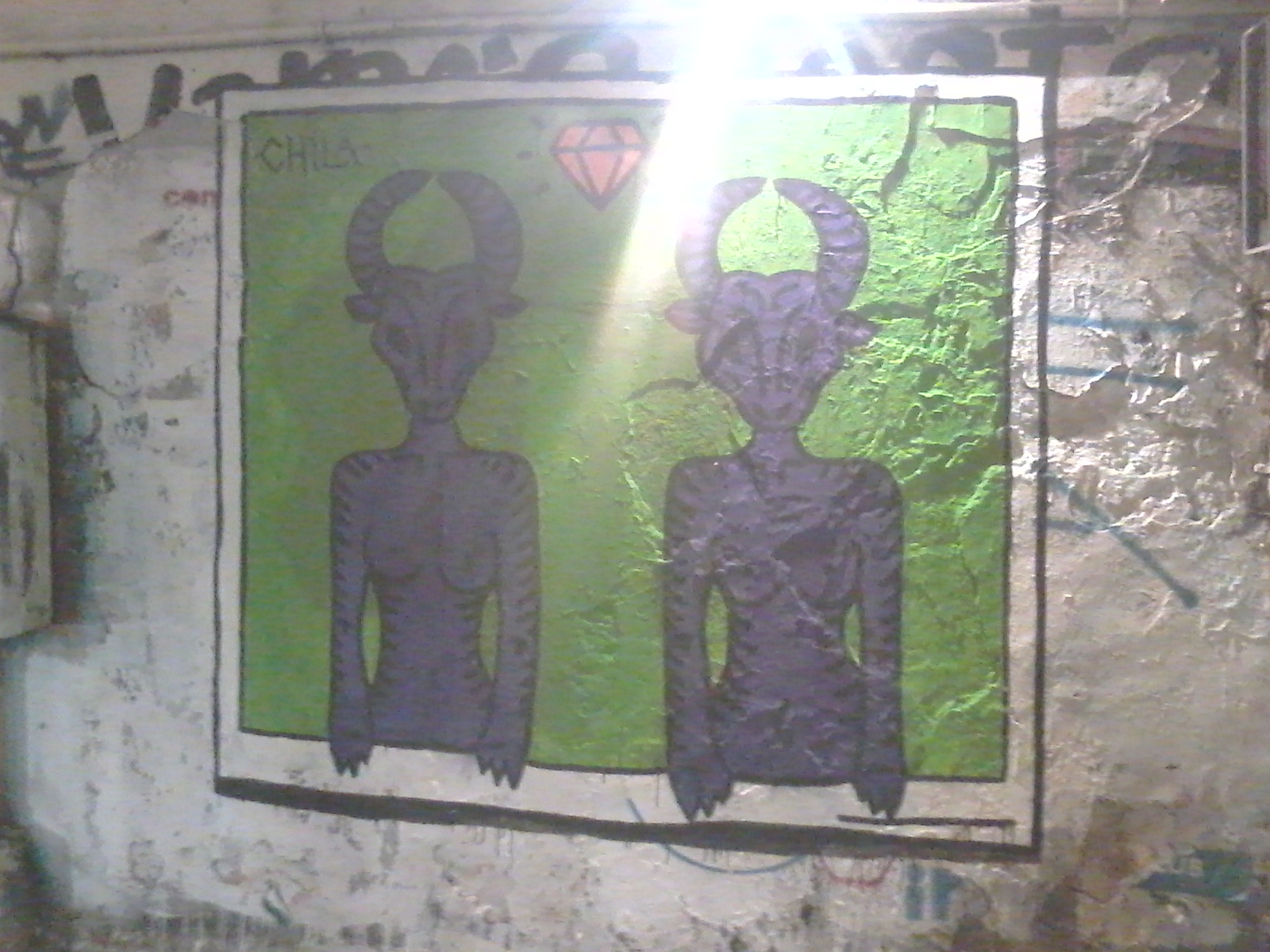 Saqué las dos fotos la misma noche. La calidad de las fotos no es buena, pero quise registrar los dos muros. En general prefiero la luz del día, pero me pareció que valía la pena mostrar las dos obras de Chila porque no se parecen mucho a lo que he visto en otras calles.